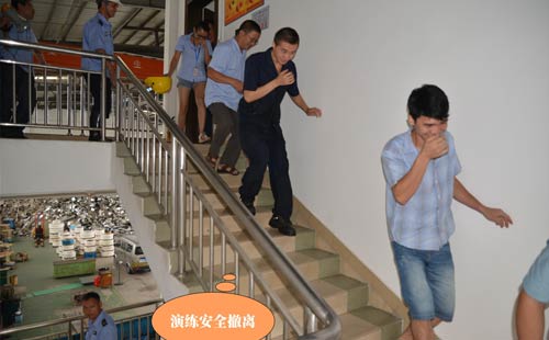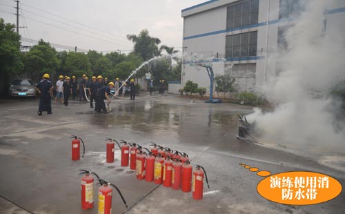 第二個環(huán)節(jié):演練緊急疏散,模擬情景是辦公樓內(nèi)響起了火災(zāi)警報,樓層內(nèi)的人員緊急疏散撤離,員工們現(xiàn)學(xué)現(xiàn)用,按萬隊(duì)長所教的做法撤離現(xiàn)場。第三個環(huán)節(jié)是演練全廠范圍內(nèi)員工接到了火災(zāi)警報后逃生、救助的情形,這也就是救援組、滅火組、醫(yī)務(wù)組、后勤組、模擬傷員等角色的演繹。第四個環(huán)節(jié)就是由萬隊(duì)長教大家如何正確使用滅火器、如何快速安裝消防水帶等一系列滅火動作,湯總特別強(qiáng)調(diào)了正確救火的重要性。期間,進(jìn)行了實(shí)戰(zhàn)滅火操作,不少員工親自動手體驗(yàn)了用滅火器撲火的過程。